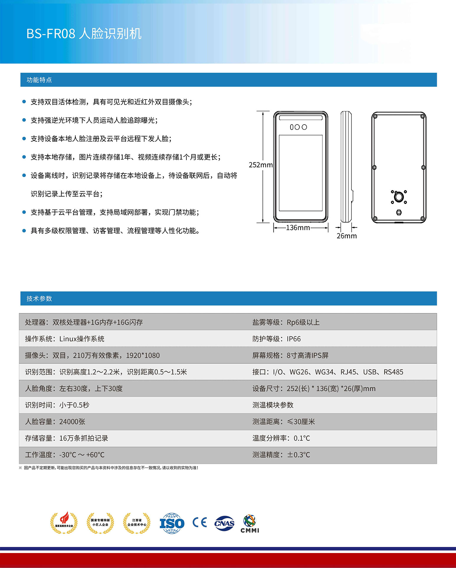 ● 支持雙目活體檢測(cè),具有可見光和近紅外雙目攝像頭;
