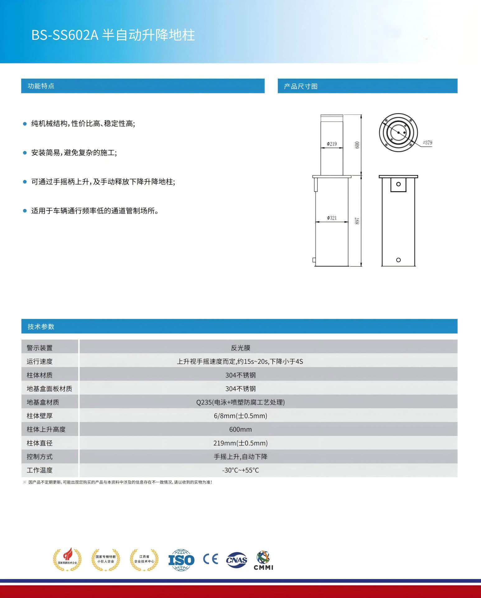 ● 可通過手搖柄上升,及手動(dòng)釋放下降升降地柱;