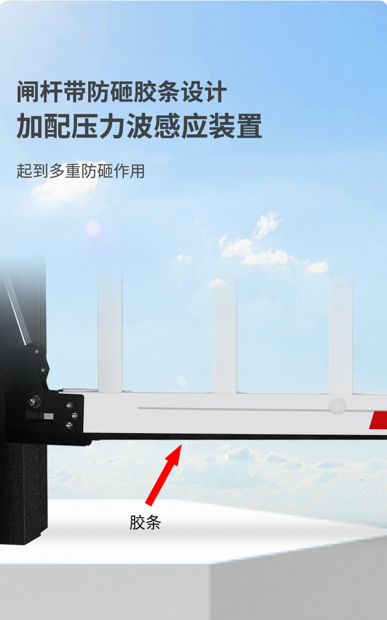 采用緩沖腳設(shè)計,減小落桿沖擊力,保護(hù)道閘機(jī)芯,降低噪音