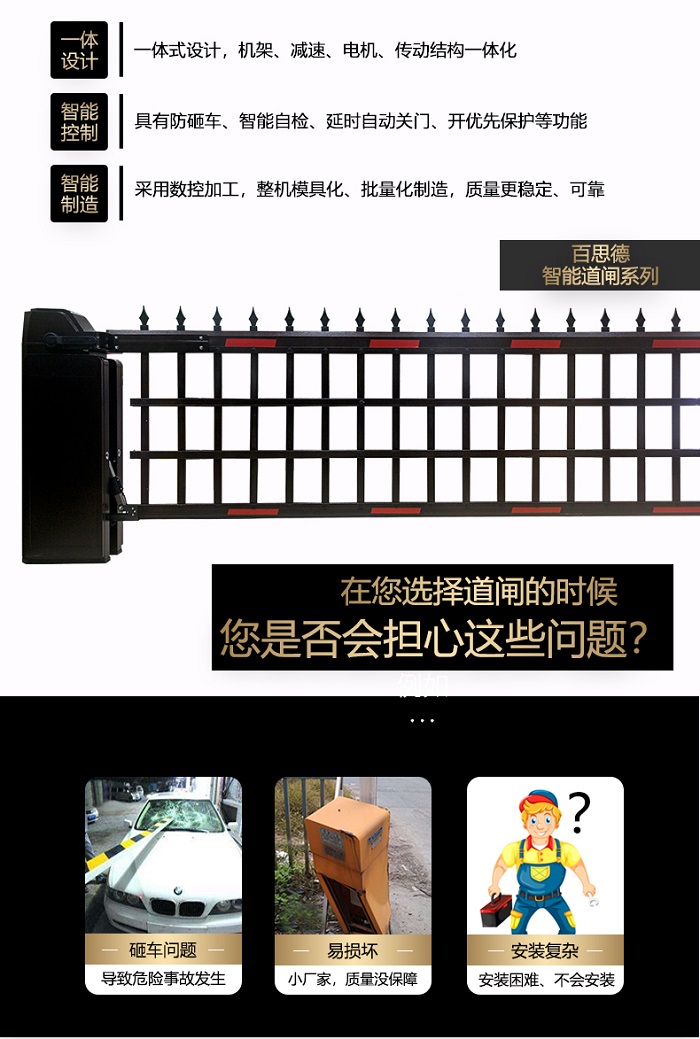 對(duì)于廣告道閘大家心里應(yīng)該都清楚是什么,在現(xiàn)在廣告道閘處于智能通道設(shè)備里面的香餑餑,搶手的很,各式各樣的廣告道閘都有,但真正的、會(huì)做廣告道閘的廠家卻沒有幾家?當(dāng)然我不是說其他的都不會(huì)做,而是或多或少有這樣那樣的問題存在。但我們百思德的廣告道閘,我可以很自信的說是真心不錯(cuò),通過這么多年的摸爬滾打,對(duì)于廣告道閘的認(rèn)識(shí)有了新一步的提升,雖然不是最好的但朝著最好為目標(biāo)在努力奮斗著。