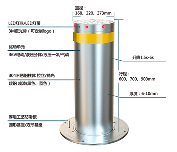眾所周知,升降柱為控制車輛通行的設(shè)備。其主要是為敏感區(qū)域阻止非允許車輛強行闖入而設(shè)計研發(fā)的,具有較高的實用性、可靠性及安全性。在監(jiān)獄、銀行、政府貴賓通道、學(xué)校等地被廣泛應(yīng)用。